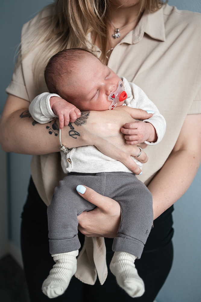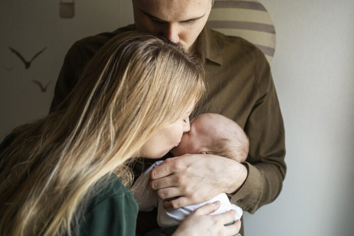 De newborn shoot duurt ongeveer 60 tot 90 minuten. We nemen rustig de tijd om de foto’s te maken. We maken verschillende beelden zoals: knuffelen op bed, foto’s van jullie samen, foto’s met oudere broertjes en zusjes en van je kindje alleen.